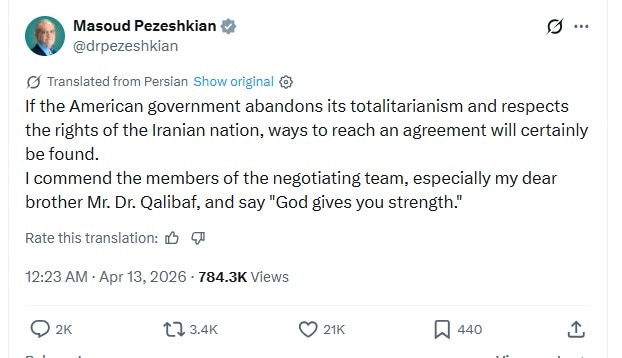 Iran President Masoud Pezeshkian later reinforced that message, saying a diplomatic breakthrough with Washington remains possible if the US abandons what he called “totalitarianism” and respects the rights of the Iranian nation. He said that under such conditions, “ways to reach an agreement will certainly be found,” while also praising Iran’s negotiating team, including parliamentary speaker Mohammad Baqer Qalibaf, for their efforts during the Islamabad talks. The remarks suggest Tehran wants to project that, despite being inches away from a deal before the collapse, diplomacy remains possible if the American side changes course.
