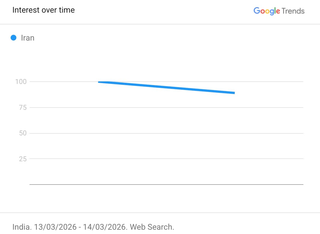 The interest in ‘Iran’ between 13 March and 14 March was high on Google India: