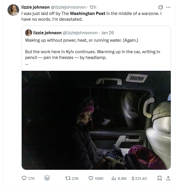 An employee who got laid off at The Washington Post shared her views on X.