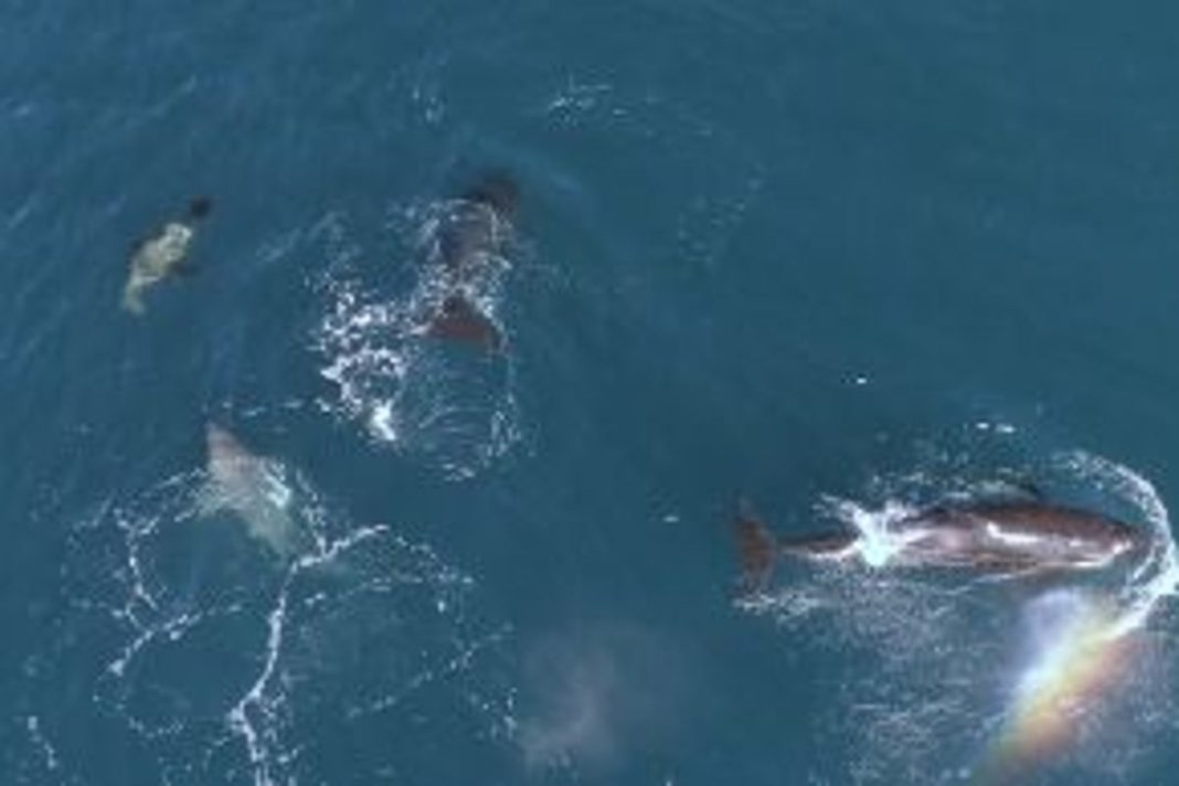 The study documented two separate hunting events where orcas killed three juvenile white sharks. In August 2020, five orcas were seen pursuing a juvenile shark, pushing it to the surface and working together to turn it upside down. The same pattern repeated in August 2022, with orcas spotted consuming shark livers after similar coordinated attacks.