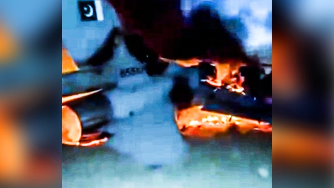 The video shows burning aircraft wreckage at night bearing Pakistani markings and the tail number “85510”. But social media users have noted that the aircraft’s size and structure do not match an F-16 fighter jet.