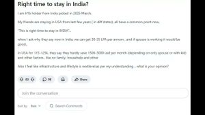 “I am h1b holder from India picked in 2025 March. My friends are staying in USA from last few years ( in diff states), all have a common point now, “This is right time to stay in INDIA”.. when I ask why they say now in India, we can get 30-35 LPA per annum , and if spouse is working it would be good.. In USA for 115-125k, they say they hardly save 1500-3000 usd per month (depending on only spouse or with kid) and other factors.. like no family, househelp and other,” the Redditor wrote asking for suggestions.