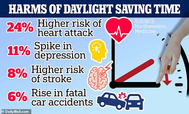 - Higher risks of cardiovascular events, suicide, and mortality post-time change