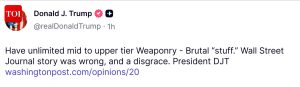 “Have unlimited mid to upper tier Weaponry – Brutal “stuff.” Wall Street Journal story was wrong, and a disgrace,” he wrote.