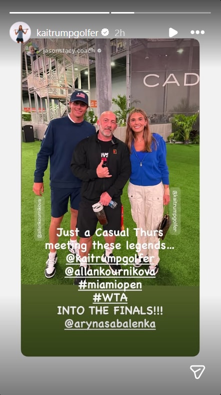 Kai had put up posts from the Miami Open and noted that Kai Trump was watching Aryna Sabalenka in action.