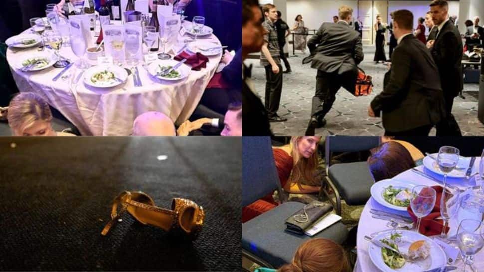 Usually filled with speeches, laughter and political exchanges, the ballroom fell into silence as security teams moved in and guests followed instructions to stay low or move away from open areas.